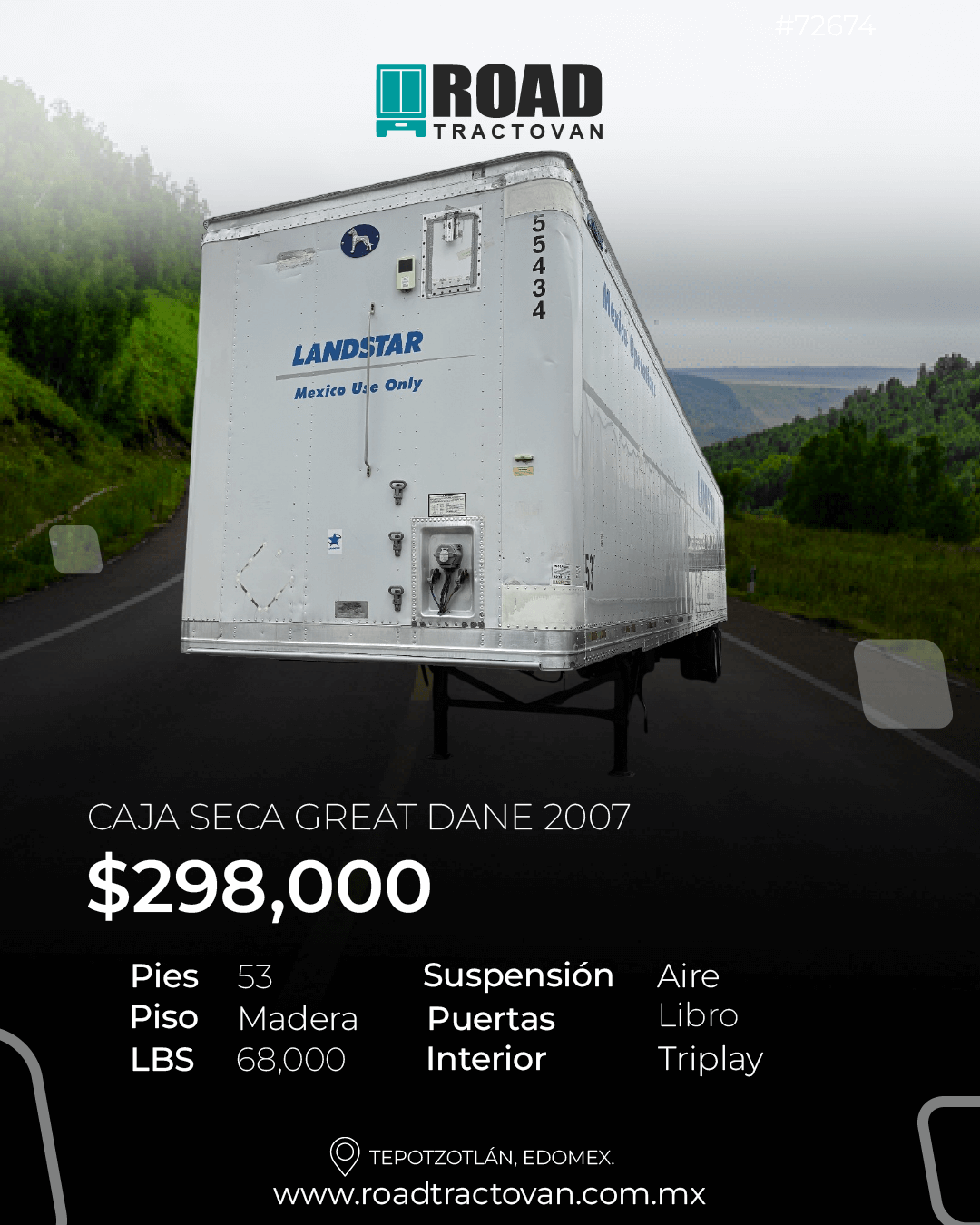 - Dimensiones: Alto: 2.80 m| Ancho: 2.50 m| Largo: 53 pies
