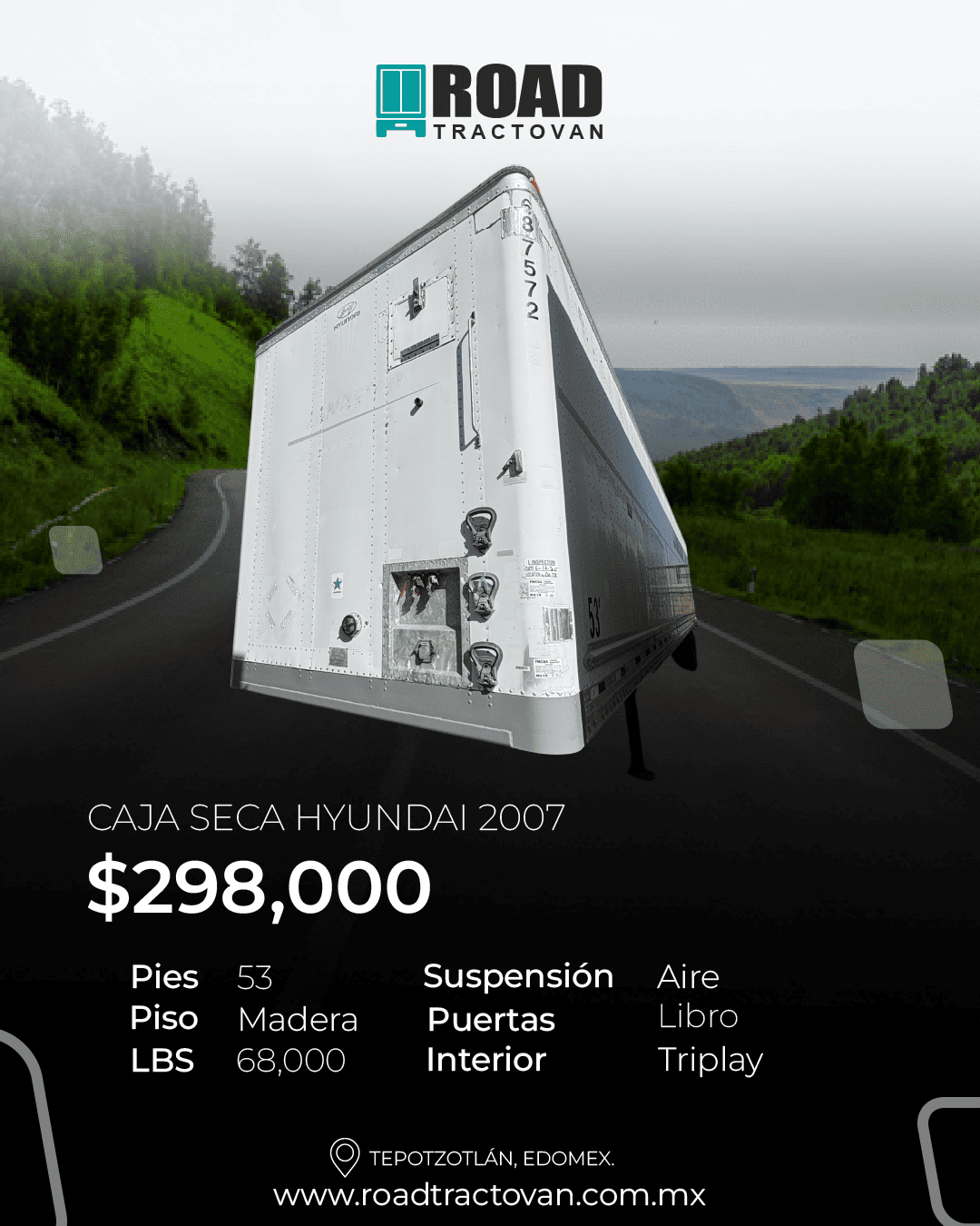 • Dimensiones: Alto: 2.80 m| Ancho: 2.50 m| Largo: 53 pies